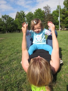 It’s not all mommy all the time. When Viv’s in good spirits, she still wants Mr. Awesome. Daddy is her partner in comedy, the Cheech to her Chong. He’s also far more patient and focused than I am, and is rarely seen trying to return a phone call while stirring the risotto while answering the door while battling a king sized contoured sheet while reading a story.